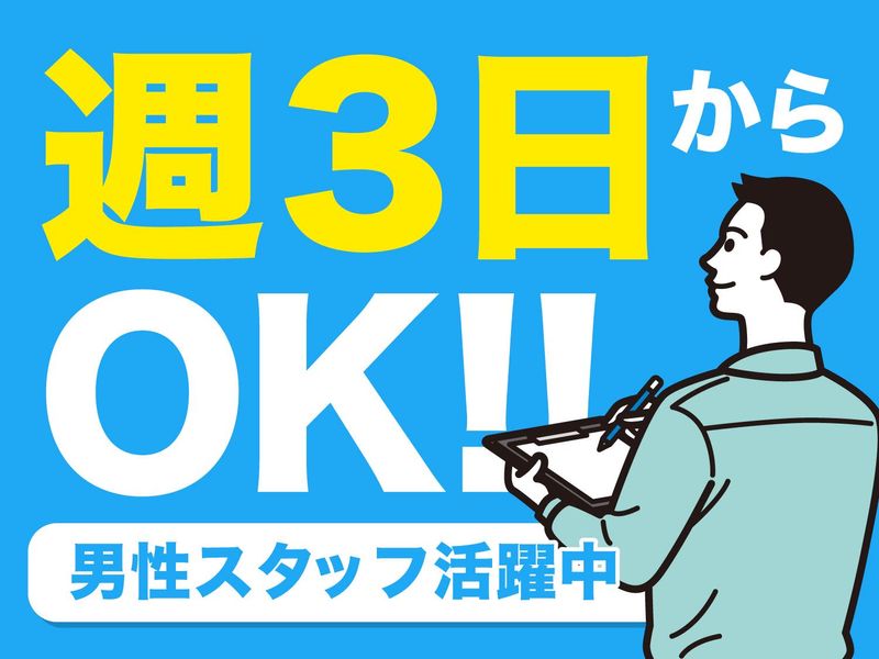 仕事内容 倉庫内でのシンプル作業です! 未経験・Wワークの男性スタッフ多数活躍中! ■おもな仕事内容 ・商品の仕分け ・トラックへの積み下ろし ・倉庫内への積み込み ・構内の整理整頓 など 難しいコトは一切ありません!! イチから丁寧にお教えしますし まずは、先輩たちと一緒に作業するので わからないことがあれば随時質問OK☆ 慣れたら一人でモクモクと作業をお任せ。 倉庫内でのコツコツ&カンタン作業で 未経験の方もも安心スタート◎ ■おすすめポイント 【…知識や経験不問*資格も不要…】 20~50代まで幅広い世代が活躍中 男性スタッフの多い職場です!! リフトなどの免許も必要ありません! 未経験から始めたスタッフがほとんど◎ 副業として働くスタッフが多数!! 本業やメインバイトだけでは足りない収入を 当社でしっかり補ってもらえるよう 働きやすい職場環境を整えています◎