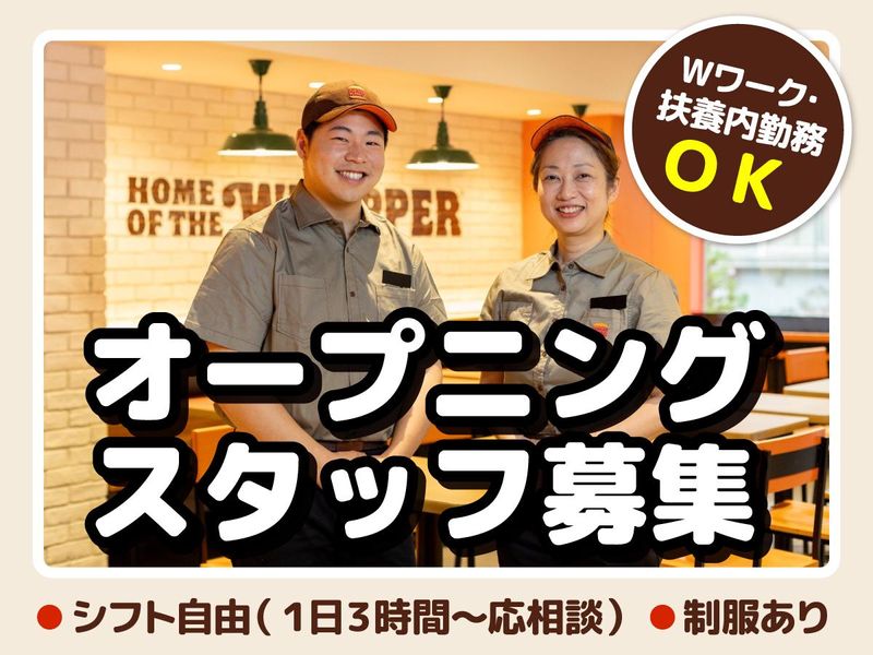仕事内容 初バイトもOK!主婦活躍中!! バーガーキングの店舗スタッフ(パート・アルバイト)求人 店舗スタッフとして、オーダー受付や商品のお渡しなどのカウンター業務、ハンバーガー、 サイドメニューの調理補助、店内の清掃などをお願いします。 接客、調理未経験スタート大歓迎です。 最初は先輩が丁寧にサポートするので、簡単なことから少しずつ覚えていける環境です。 笑顔で対応できる方大歓迎です。 ■ブランクからの復帰も歓迎 バーガーキングでは主婦(夫)さんが活躍しているほか、子育てなどのブランクから 仕事復帰をしたスタッフも多く在籍しています。ブランク期間や仕事の経験年数は不問のため、 子育て明けなどで仕事復帰を考えているという方、まずはお気軽にご応募ください。 笑顔で明るい対応ができる方を歓迎しています。 ⭐▶ バーガーキングについて  ̄ ̄ ̄ ̄ ̄ ̄ ̄ ̄ ̄ ̄ ̄ ̄ ̄ ̄ ̄ 世界で愛されるハンバーガーショップ★ 直火で香ばしく焼き上げたビーフパティや、レタスやピクルスなどを増量できる「オールヘビー」など、 ここでしか味わえないクオリティとボリュームで人気のバーガーキング。 定番メニュー「ワッパー」は、一般的なハンバーガーの約1.4倍の大きさを誇ります。 ⭐▶ オススメポイント  ̄ ̄ ̄ ̄ ̄ ̄ ̄ ̄ ̄ ̄ ̄ ̄ ̄ ̄ ̄ ✅マニュアル完備で安心スタート 調理や店舗運営の手順はマニュアル化されており、未経験の方でもスムーズに業務を覚えられます。 分からないことは先輩スタッフがフォローするので安心です。 ✅シフト自由で働きやすい! 時間・曜日は相談OK! 「学校終わりに」「子どもが帰って来るまで」「フルタイムでがっつり稼ぎたい」など あなたのライフスタイルに合わせて働けます♪ ✅人気!オープニング募集! 新しい綺麗な店舗で働けます♪ みんなで新しい店舗を盛り上げていきましょう! ✅いろいろなエリアから通勤可能! 尼崎市から勤務されている方もいらっしゃいます! その他大阪市であれば、大阪市西区、大阪市港区、大阪市此花区、大阪市大正区、大阪市浪速区など、 色々なエリアから通勤していただけます♫