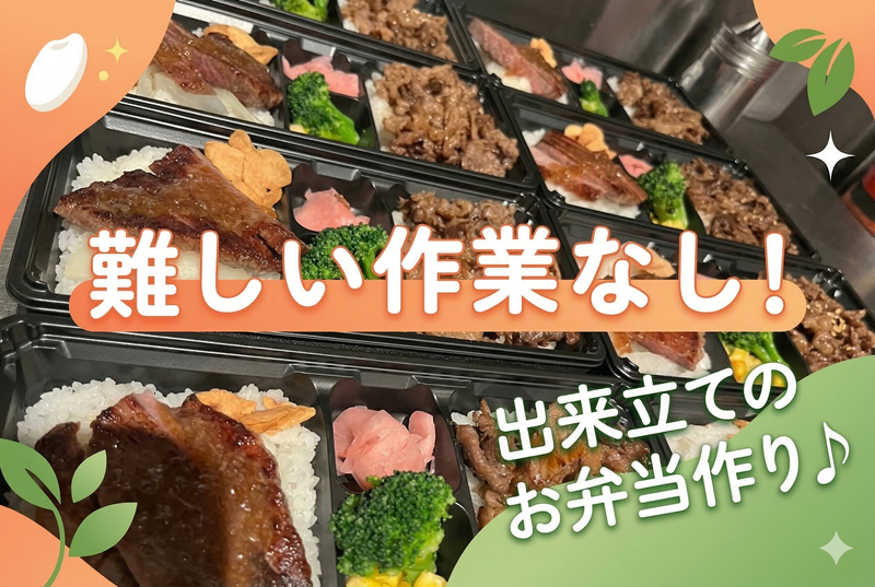 仕事内容 ━━━━━━━━━━━━━━ ✅ シンプル作業で未経験OK こだわりの調理&販売! ━━━━━━━━━━━━━━ お客様に選んでもらった お肉をその場でサッと焼き お弁当に詰めるお仕事です。 特別な技術は必要なく、 丁寧に進めれば大丈夫⭐ 【仕事の流れ】 ✅ 注文内容を確認 ✅ お肉をサッと焼く ✅ お弁当箱に盛り付け ✅ 笑顔でお渡し! 派手な調理はありませんが 「美味しいお肉」を扱う 楽しさや、やりがいを 感じられる職場です✨ バイトデビューの方も 安心してスタートできます⭐
