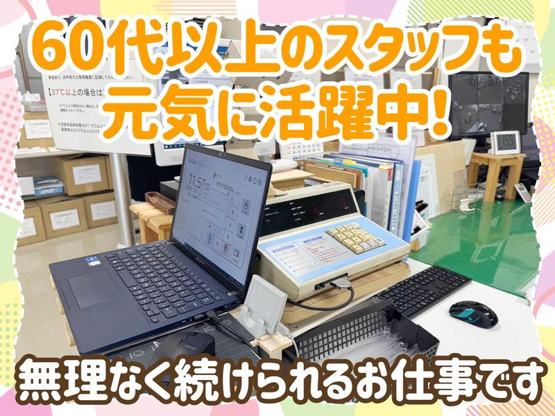 職場環境 現在5名が活躍中! 60代、70代の定年退職された後に、気軽にできる仕事として長く働いていただいています! ★中高年活躍中! ★シニア活躍中!