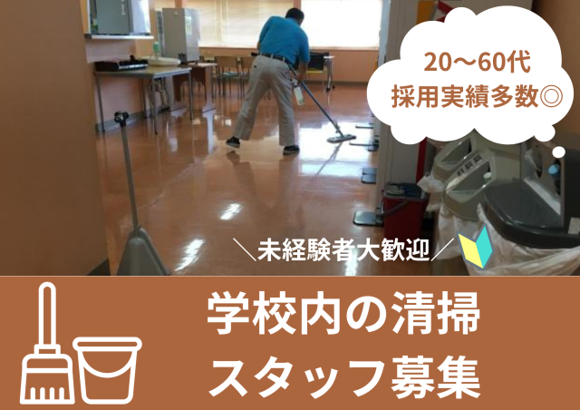募集要項 職種 学校内の清掃 雇用形態 アルバイト / パート / 業務委託 仕事内容 あなたには杉戸町にある学校内清掃をお任せします。 ▼具体的には *床の掃除機掛け *トイレ清掃 *ごみ回収 *共有部階段 *拭き上げ *最後に綺麗になったか確認 <スタッフの9割は未経験スタート> 仕事内容はとってもシンプルなのでご安心ください! 初めてのスタッフもすぐに覚えられる簡単な作業です♪ 重い荷物を運んだり体に負担がかかる仕事はありません! 何かお困りごとがあれば社員がしっかりフォローするので何でも聞いてください <お仕事の魅力> やりがいを持って働けます コロナ禍で、今までより一層必要とされる存在になった「清掃スタッフ」 キレイにすることはもちろん、人々の健康を守ることができるやりがいあるお仕事です。