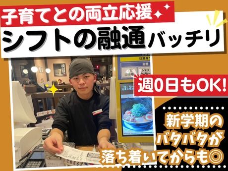 仕事内容 ◆時間優先で働けるから両立しやすい ■回■回■回■回■回■回■回■回■回 まずは3ヶ月お試しスタート! とりあえず3ヶ月だけでも全然OK◎ もちろん長期も大歓迎です! ■回■回■回■回■回■回■回■回■回 保育園のお迎えまでの時間を 有効活用しませんか? 5歳のお子さんを持つ主婦(夫)さんも 安心して働ける、ランチタイムの 接客を中心としたホールスタッフのお仕事です。 ━━━━━━━━━━━━━━━━━━━ 「保育園のお迎えに間に合うから助かる!」 「急な発熱でも、みんなで助け合える環境」 「ブランクがあったけど、優しく教えてもらえた」 (30~40代主婦(夫)スタッフより) ━v━━━━━━━━━━━━━━━━━ ◆お仕事内容の詳細 調理経験必要なし!年齢も経験も一切問いません! ・簡単な調理補助 ・盛り付け ・洗い場 先輩スタッフたちも 最初は未経験スタートでした! 未経験やブランクありでも しっかり丁寧に教えるので安心してくださいね! まずは簡単な盛付から始めましょう♪ <この仕事の特徴> ★9:00~15:00内で1日3h~OK! ★主婦さん活躍中!アットホームな環境 ★週1日~OK!学校行事や家庭の都合を考慮 ★未経験、ブランクOK!かけもちもOK! <一日の基本的な流れ> -09:00 出勤・開店準備 -10:30 ランチタイム営業開始 -12:00 ピークタイム(みんなで協力♪) -14:00 片付け・清掃 -15:00 退勤(お迎えに余裕で間に合います) ◆昼間の時間を有効に活かす主婦さんが多数活躍中 現在、主婦さんを中心に多数活躍中! 「子供が学校に行っている間だけ働けるので助かる」 「急な子供の発熱でも休みやすい環境」と好評です。 小学生のお子さんがいらっしゃる主婦(夫)さんが多く、 予定があるときはスタッフ同士で助け合いながら楽しく働いています。 <家庭との両立支援> ・子供の学校行事優先OK ・シフトは2週間毎の提出で予定が立てやすい ・急な休みも相互フォロー体制あり ・経験豊富な先輩ママさんスタッフがサポート ・髪型・髪色も自由 ・扶養内勤務OK ◆担当者からのメッセージ 飲食店経験がなくても心配ありません。 先輩スタッフが優しくサポートします。 「久しぶりの仕事で不安」 「接客経験がない」という方も多く、 みんな最初は初心者からスタートしています。 明るく笑顔で取り組める方、大歓迎です! 自分に合う生活スタイルの中で ムリせず働けるのがスタッフに人気の当店! まずはお気軽に希望する働き方を 聞かせてください。 ご応募お待ちしています!