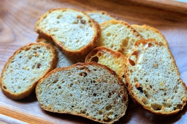 製菓工場でラスク用パンの計量や生地のカット