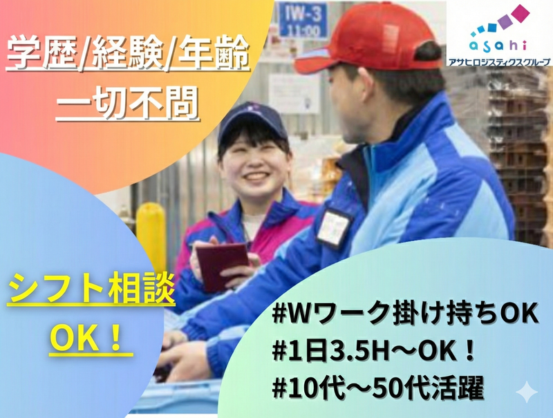 シフト制 勤務時間詳細 ●通常勤務 午前8時30分~午後1時頃(約4時間30分前後) ※仕分け物量により変動 土日勤務できる方歓迎!!