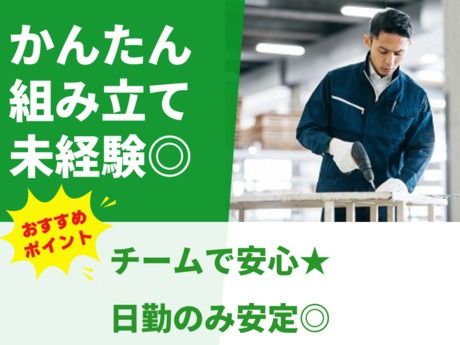 仕事内容 \ここがポイント/ ★未経験歓迎!カンタン組立て作業♪ ★日勤のみ!規則正しい生活リズム◎ ★図面を見ながらのモクモク作業★ ★チーム作業で安心スタート! *・。・。*・。・。*・。・。* <仕事内容> \人気の日勤!半導体装置のフレーム組立て/ 工場内で、半導体製造装置に使われる アルミ製フレームの組立てをお願いします。 (1)ドライバーを使って部品をしっかり固定 (2)図面を見ながら順番に組立て ★作業はすべて工場内、クリーンルームではありません ★図面の見方や工具の使い方はイチから教えます! *業務の変更もないため、安定して続けられます! *・。・。*・。・。*・。・。*