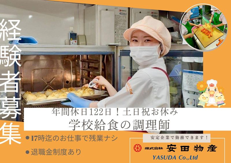 仕事内容 ✨安心のポイント✨ ✅年間休日122日でプライベート充実! ✅土日祝休みで 家族との時間もしっかり確保♪ ✅産休・育休取得率100% 復職率94%の働きやすさ! ✅賞与年2回&退職金制度あり! 【お仕事内容】 小学校給食の調理業務をお任せします♪ 学校給食経験者の募集です! ✅献立に合わせた仕込み 野菜の皮むきやカットなど ✅調理業務 メイン・副菜、アレルギー対応食など ✅配缶作業 クラス単位での給食の仕分け ✅食器洗浄 ✅在庫管理 チームで協力して行うので、 調理師・栄養士・補助スタッフとの 連携もスムーズ! ◆女性スタッフインタビュー (40代・主婦) 「もう一度“あのやりがい”を 感じたくて、戻ってきました」 学校給食の仕事に 携わっていた経験があり、子育てが 落ち着いたタイミングで再び現場へ。 経験者としてすぐに戦力として 扱ってもらえたのも嬉しかったですし、 何より、子どもたちの“美味しかった! という反応が励みになります。 朝から午後までの勤務なので、 夕方は家のことに集中できます。 「仕事と家庭を両立できる環境」で、 無理なく続けられるのが この仕事の魅力だと思います。 ◆男性スタッフインタビュー (30代・元給食センター勤務) 「子どもたちの健康を支える 誇れる仕事です」 以前は給食センターで 数百食の調理を担当していました。 現場で直接子どもたちのために 働ける環境を求めて、転職をしました。 衛生面や調理手順など、 前職の経験が そのまま活かせると感じています。 チームワークが重要な職場なので、 段取り力やコミュニケーション力も 自然と鍛えられます。決まった時間に 終業でき、生活リズムも整います。 体力を活かしたい方にも 向いている職場です。 <安田物産について> 1955年に創業し、長年にわたり 地域の“食”を支えてきた企業です。 保育園・学校・介護施設などへ 給食や仕出し弁当を提供しており、 神奈川を中心に160拠点以上の 契約実績を誇ります。 地元農家と連携した地産地消や 酒造の米粉活用など、 環境と食育に配慮した 取り組みも推進中。 直近10年は業績右肩上がりで 安定感抜群!