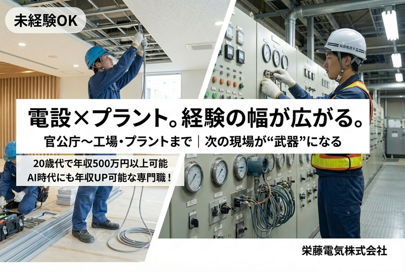 電気工事士(20代年収500万円以上社員多数×一流目指せる)