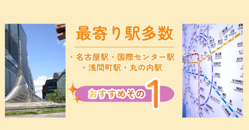 交通・アクセス 名古屋駅徒歩8分 、国際センター駅徒歩5分、 浅間町駅徒歩5分