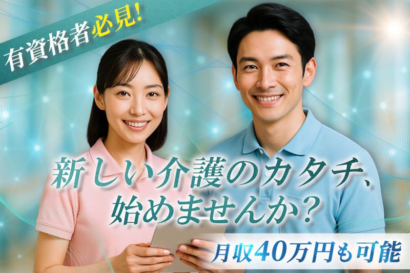 【アピールポイント】 【有資格者必見!業界経験が浅くても大丈夫!】 “介護=大変”を変える。テクノロジーで楽しく働く時代へ。 ✅月収33.9万円 ~40万円! ✅住宅手当や年末年始手当など福利厚生充実 ✅資格取得支援あり/スキルアップも可能