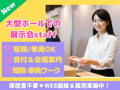仕事内容 ╲✨会場での入場受付業務✨╱ 例えば… ✅入口でのチケットのもぎり ✅ノベルティの配布 ✅キャンペーングッズのお渡し ✅応援グッズの販売やお渡し など、盛り上がる為のお手伝い! ⏩ポジションは… 分担&複数人体制なので、 困ったらすぐに声もかけられます♪ ⏩未経験歓迎! 重い機材を運ぶ事は一切無し! 丁寧な対応等が出来ればOK♪ ⏩横浜市内の勤務会場例は… Kアリーナ横浜、パシフィコ横浜など!