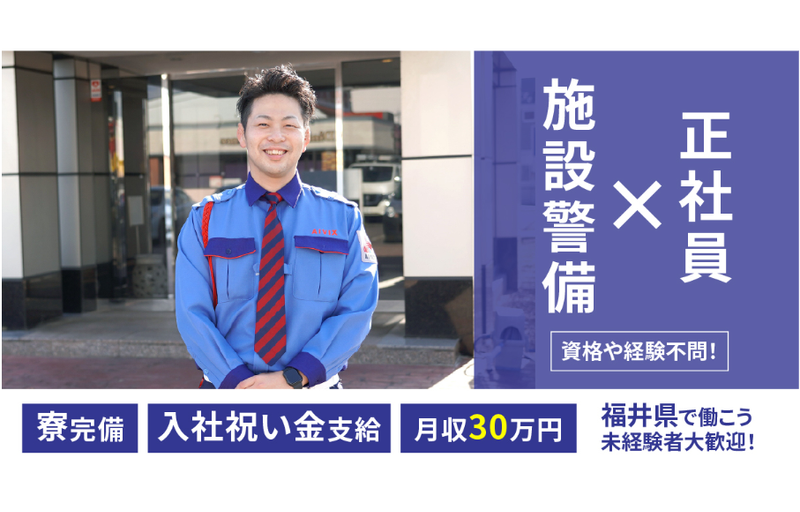 仕事内容 発電所内外の安全を見守り、地域のみなさまの安心をつくりだすお仕事です。発電所のルールに基づいて警備業務を行います。 メイン業務は日勤シフトor夜勤シフトで少し異なります。 午前は、各所より、扉やゲートなどの開閉依頼があった場合の対応をする呼び出し業務と各種申請書類の確認業務が中心になります。 午後は、敷地内の異常がないかを確認する敷地内の巡回業務、出入りの多いゲートに配置して扉の開閉を行い、出入りの管理業務も行います。その合間に、申請書類の確認業務も行っています。 警備のお仕事は、定型した業務が多いです。巡回・ゲートの開閉や、申請書類の確認などが主な業務です。だからこそ、大切にしているのは、「リスクに備えること」。警備の資格を取得し、知識を得て、ひとつひとつの業務を実直に遂行していくことです。まずは経験・知識は不要です。私たちが大切にしている想いに共感いただける方に、このお仕事をお任せしたいと思っています。 【働き方について】 巡回や出入りする方の管理、申請書類の確認が主な業務になります。 働く仲間は、子どもの頃警察官や消防士に憧れていた...そんな方が多いかもしれません。 入社後は、必要な資格「施設警備業務検定2級」にチャレンジし、知識と経験を積んで安定的に勤務できます。 お休みは夜勤(月7~10日)があるので月4~6日になりますが、その分しっかりと手当で還元されます。 資格取得に関する費用と取得後の手当も付くのが魅力です。 当社の定年は61歳ですが、その後嘱託にて再雇用が可能!40~50代の方も活躍頂いています。 職種や職場も幅広いお仕事がございますので、定年後もスキルや年齢に応じたお仕事のご相談も受け付けています。 【働く環境】 職場となる発電所には、休憩室や社員食堂(日中のみ)、自動販売機も設置されているのでしっかり休憩をとることができます。 また社員寮には全室トイレとお風呂が付いており、共用の洗濯機・乾燥機を設置しています。 小浜と敦賀は8畳の寮で、どちらも近隣スーパーから徒歩や車で5分と近く、オフの日も快適に過ごせる環境です。 お休みは平日休みが多いですが、希望日の相談もOK! 皆さん趣味の釣りや映画など、しっかりメリハリをつけてリフレッシュされています。 【AIVIXについて】 AIVIXは50年以上の歴史がある安定した企業です。 福井を中心に全国24拠点、主に富山・滋賀・京都・大阪・千葉・東京のエリアにおいて、受付・事務・清掃・警備・設備管理・施設管理・営業等のさまざまな職種をご案内しています。 未来に向けたIT/機械での警備技術やロボットの導入なども積極的に行っており専門性も高く、知識やスキルを取得するため、チャレンジしたスタッフは昨年613名、資格取得件数は1727件と日々励んでいます。 取得後の手当もあり、スキルUPによる評価もありますので、安定的に収入を上げて安心したライフスタイルを実現できる環境です。 【プライベートは自然に癒やされリフレッシュ】 発電所は海のすぐ近く。 仕事を終えたらすぐに釣りを楽しむことができ、釣り好きのスタッフからとても好評です。 また釣りの穴場が多いのも魅力です。 敦賀発電所近くには、「水島海水浴場」があり、北陸のハワイとまで言われるほど美しいエメラルドグリーンの海と白い砂浜が広がっています。 水島へは、7月と8月に観光船で渡ることも可能です。 休日は自然環境でしっかりリフレッシュし、気分を切り替えられるので、仕事にも熱意をもって取り組むことができます。 【貯金&趣味への投資がしやすい環境】 10~20代スタッフは入社時から、夜勤分の収入UPがあるので周りの友人たちより月収は多いです。 発電所で働く24歳スタッフの月収は28万円。 寮を利用するスタッフが多く家賃負担も少ないため、手取りが多いのが魅力! 貯金したり、趣味に使ったりと充実しています。 スタッフ間も、フランクに話せて親しみやすい雰囲気。 社内成人式があり、会社のみんなでお祝いするなど、若手を大切に育てる環境です。 【地域をスタッフみんなで守っています】 アイビックスでは会社の警備車に「こどもの安全や街の安全の為に見守り協力企業」としてステッカーを貼り、業務にあたっています。 アイビックスには様々な職種がありますが、「誰かのためになる仕事」「安全をつくる仕事」として、地域の皆様に選ばれています。 先輩スタッフには、スポーツ部の経験者が多く、過去のインターハイ選手も活躍しています。 どの職種のスタッフもやりがいを持って勤務しており、ステップUPのため資格取得にも励んでいます。
