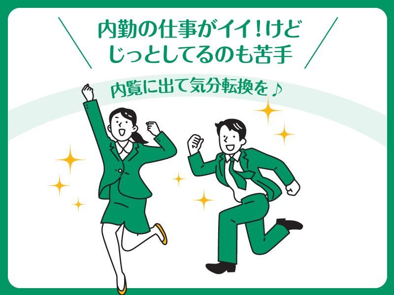 求めている人材 高卒以上│要普通免許 笑顔で明るい対応ができる方 ✅女性も活躍中♪ ✅プライベート重視の方にも最適です! ✅営業・販売・サービス業の経験者も歓迎 <カウンター営業+ときどき外出> たまに外で日の光も浴びることができ、 リフレッシュにもなる外出アリの働き方。 これをイイネ!と思える方にぜひ! <こんな方は特に歓迎> ◎成果に見合った収入を安定して稼ぎたい ◎お客様の笑顔や「ありがとう」が嬉しい ◎せっかくならやりがいのある仕事がしたい ◎年齢や性別に関係なく楽しく会話できる ◎明るくて仲のいい職場で働きたい ◎目標、ヤリガイのある仕事がしたい! ◎転勤がなく、安定して働きたい! ◎仕事の後は、家族との時間を大切にしたい!
