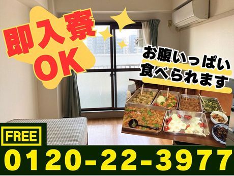 祝金3万円支給【即入寮可:Wi-Fi無料】3食・家具家電付!日払い可!TEL:0120-22-3977