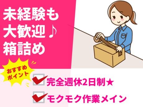 仕事内容 \ここがポイント/ ★日勤のみ×シンプル軽作業!生活リズム安定 ★未経験歓迎◎教育体制ばっちり! ★体を動かすのが好きな方にもおすすめ♪ *・。・。*・。・。*・。・。* <仕事内容> \未経験スタート多数!工場内での軽作業/ お肉の袋詰め商品を段ボールに箱詰めしていくお仕事です。 【具体的なお仕事内容】 ・製品ごとに仕分けされたお肉を 袋のまま段ボールへ箱詰め ・出荷用の段ボールを組み立てる ・まれにお肉の余分な部分のカット作業あり (包丁を使いますが簡単作業なのでご安心ください) ★入社後は先輩スタッフが丁寧に教育します ★重たい作業は少なく体への負担も少なめです ★作業はコツコツ&もくもく進める内容が中心 *・。・。*・。・。*・。・。*