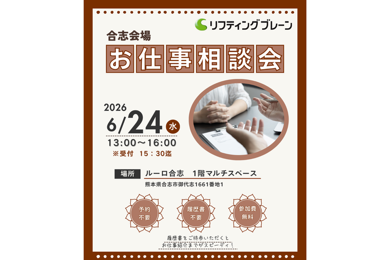 ■応募後の流れ 【人材派遣の流れ】 STEP1|かんたんWEB登録 ・まずはWEBから登録 ・来社日程を調整します STEP2|来社面談(本登録) ・お仕事に関するご希望・経験・資格をヒアリング ・職種に応じた適性テストでスキルチェック ・応募書類提出&登録シート記入 ・あなたに合ったお仕事をご案内 STEP3|職場見学/会社面接 ・実際の職場を見学:両目: ・紹介予定派遣は企業面接あり ・面接時もスタッフがしっかりサポート STEP4|就業意思の確認 ・合わなければお断りOK ・別のお仕事もご提案します STEP5|入職時研修(派遣前研修) ・安心してスタートできるように事前研修を行います STEP6|就業開始 ・初日は担当者が同行してフォロー / 最短でご応募~採用まで 1週間程度でご案内が可能です。 ご本人様のご都合に合わせて調整致しますので 安心してご応募ください。 \ ■応募受付電話番号 096-337-3214 ※電話番号に関する補足: いつでもお気軽にお問い合わせください。 ■個人情報の取扱いについて ご提供いただいた個人情報は、採用選考及び結果等の通知・連絡の為に利用いたします。 それ以外の利用目的または法令等に基づく要請の範囲を超えた利用はいたしません。