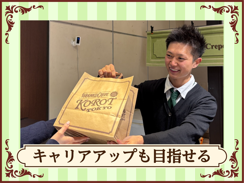 求めている人材 ✅必須条件  ̄ ̄ ̄ ̄ ̄ ̄ ■日本での就労が可能な方 ※Japanese language ability is required ✅歓迎条件  ̄ ̄ ̄ ̄ ̄ ̄ ■学歴不問 ■第二新卒歓迎 ■都内在住者活躍中 ■20代~40代活躍中 *……*……*……*……*……*……* \\ こんな方にもオススメ!! // 「人間関係のストレスが少ない職場がいい」 「未経験だけど飲食販売のお仕事がしたい」 「専門学校でスイーツを学んでいた!」 「コロットのミニクレープが大好き!」 1人の時間が多いので、 複雑な人間関係ナシ! 気を使いすぎることもなく、 マイペースに落ち着いて働けます♪ 困ったことがあったら、社内アプリで いつでも相談できるので安心ですよ◎ *……*……*……*……*……*……* ╭━━━━━━━━╮ ✤ よくある質問 ✤ ╰━v━━━━━━╯ 【Q】複数店舗の巡回は大変…? 【A】「この店舗ではこの商品が人気」 などの傾向も掴めておもしろいですよ◎ マネジメントスキルも身についていく ので、キャリア志向の方にもピッタリ✨ 【Q】プライベートも大切にできる? 【A】もちろんです◎早番・遅番を 組み合わせた勤務になるため、 仕事前や仕事終わりに用事を済ませる など、有意義に過ごせます! 希望休の取得も可能なので、 「旅行のためこの日は休みたい」 …なんて希望もしっかり叶います♪ 年齢の条件と理由:あり(例外事由3号のイ・45歳以下/長期勤続によるキャリア形成のため)