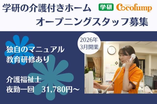 仕事情報 ● 仕事内容 介護付きホームの夜勤専従介護スタッフとして、コール対応や安否確認のほか、起床・就寝介助や排泄・移動・移乗介助などをお願いします。17時~翌9時専属での勤務となります。夜の時間帯を有効活用したい方、学研ココファンの介護のお仕事に挑戦してみませんか?経験が浅い方もお気軽にご応募ください。CO001 夜勤手当でしっかり稼げる 学研ココファンでは、労働時間を問わず、夜勤となる方全員に手当が支給されるため、夜の時間帯を活用して働きたい方や、日中はプライベートを優先したいという方にオススメです。シフトも相談に応じているため、まずはご希望の働き方をお気軽にご相談ください。 ステップアップできる職場 まずは「スタッフ」として始めていただき、その後は「コーチ(育成担当)」「リーダー」へとステップアップしていく明確なキャリアパスがあるため、向上心を持って働けるのが魅力です。実務経験を積みながらステップアップしていくことができるので、成長実感を得られるのがやりがいのお仕事です。 未経験スタート大歓迎! アルバイト・パートのお仕事では、未経験の方や経験が浅い方からのご応募を歓迎しています。働きながら資格の取得ができるため、経験を積みながらスキルアップできるほか、充実した研修制度もご用意しており、基礎から学んでいけるのが魅力です。福祉業界のお仕事に挑戦したい方、お気軽にご応募ください。 同じ志を持って行動する 学研ココファンでは、高齢者が安心して暮らせる社会を実現することで、多くの方の心がゆたかになると信じています。だからこそ、従業員にも同じ志を持って行動していただくことを大切にしています。介護や福祉に興味がある方はもちろん、「すべての人が心ゆたかに生きる」考え方に共感できる方を歓迎しています。