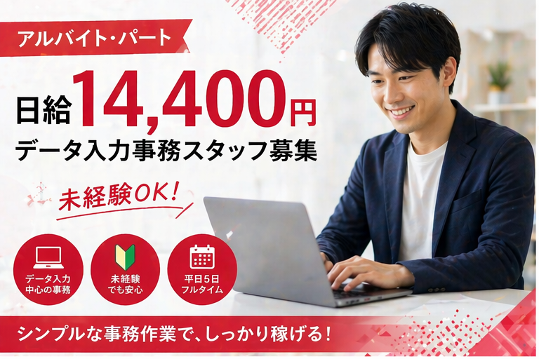 日給14,400円 データ入力事務スタッフ募集|未経験OK