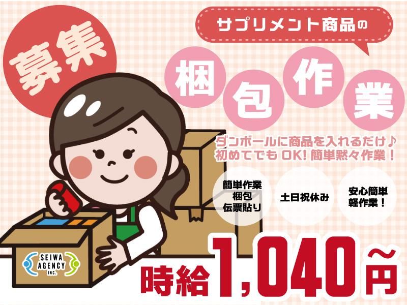 仕事内容 サプリメント商品の出荷準備スタッフ募集! 人気の軽作業◎サプリメント商品の出荷に関わるカンタン作業をお任せします。 現在、家庭と両立しながら働く主婦の方々が多数在籍しており、和やかな雰囲気の中でお仕事をされています。 重い荷物を運ぶなどの力仕事は一切なく、未経験の方でも無理なくスタートできる環境が整っています♪ 【お仕事内容】 ・サプリメント商品の品出し ・商品の梱包作業 ・伝票の貼り付け ・その他、付随する簡単な作業 【おすすめポイント】 ・ 軽作業のみ! 重たい物は一切ありません。 ・ 未経験歓迎! 丁寧な研修とサポートがあるので、安心して始められます。 ・ 快適な作業環境! 空調完備のキレイな作業スペースで、季節問わず働きやすい♪ ・ シンプル作業! 単純作業なので覚えやすく、黙々と作業したい方にピッタリ! 【応募資格】 ◆経験・年齢不問! ◆未経験・ブランクがある方も大歓迎♪ ◆主婦(夫)・フリーター・ミドル世代も活躍中! 【雇用形態】 派遣社員