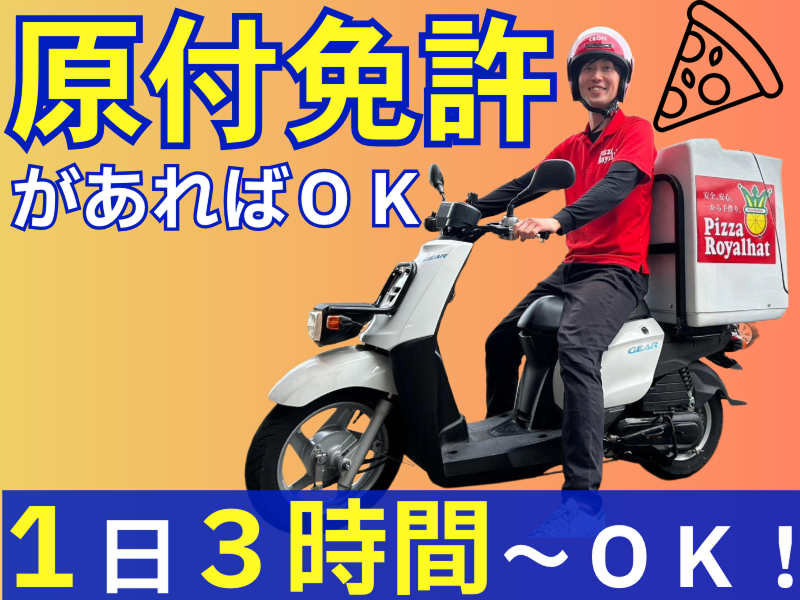 仕事内容: 【新着】アルバイト・パート募集 ============================== ✅「ピザロイ」としてリニューアルオープン! ✅時給1200円~の高時給スタート ✅友達紹介特典&社割あり ✅週0勤務もOK ============================== \週3日~&1日3h~OK!/ ピザ屋さんの宅配・店舗スタッフ ここで働く先輩の9割が、 実は未経験からのスタートでした! 初めての方にも安心の研修制度あり◎ ピザ・ロイヤルハットから「ピザロイ」に 生まれ変わった今、新しい仲間を積極採用中です✨ 《具体的なお仕事内容》 アツアツのピザを松山市近隣のお客様へ お届けするお仕事です。 ・ご注文を受け、配達ルートを確認 ・原付でご注文先へお届け ・お会計 (現金やQRコード決済にて) 状況に応じて、簡単な調理補助や 洗い物などをお願いする場合もございます。 ⏩配達時間は? 1件あたりの配達時間は往復10~20分ほどです。 オーダー毎に1件ずつ、1時間で2~3件ほど配達します。 ------------------------------------------------ 《先輩スタッフの働き始めたきっかけ》 ・原付などを運転することが好きで、 友達に誘われたことから(紹介特典あり) ・シフトの融通が利きやすい職場を探していた ・シンプルにピザが大好きで、活気ある お店の雰囲気も魅力的だった!