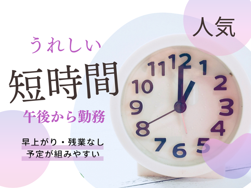 固定時間制 勤務時間詳細 ⭐時間/13:00~17:00(実働4.0時間) 毎日同じ時間を働くことができます⏰ だから毎月の給料が安定し、 プライベートの予定も組みやすいことが 特徴です✨ ⭐休日/週休2日 週5日の勤務です。 お休みの曜日については 面接時にご相談させていただきます。