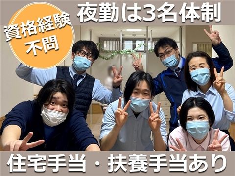 無資格・未経験OK♪住宅手当・扶養手当あり◇賞与実績3ヶ月◆≪入職支援金支給対象求人≫夜勤3名体制☆残業ほぼなし◎【神戸市東灘区・住吉駅・特養・介護職・正職員】