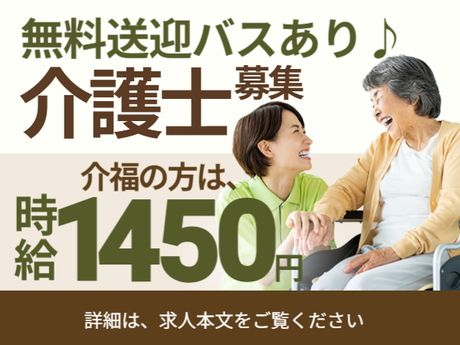 仕事内容 ■介護付有料老人ホームにおける介護業務全般 ・食事の配膳、下膳等の食事介助 ・浴室への誘導、更衣等の入浴介助 ・トイレへの誘導、オムツ交換等の排泄介助 ・入居者様の見守り、コミュニケーション ・施設内でのレクリエーション ・介護記録作成 など <派遣先> 全100床介護付有料老人ホーム <通勤方法・その他補足> ※服部天神駅、緑地公園駅よりシフトに合わせた従業員専用の無料送迎バスあり <新型コロナウイルス感染防止対策実施> マスク着用での勤務、アルコール消毒液完備などの感染対策をし、利用者様もスタッフも守れるよう体制を整えています。 <受動喫煙対策> あり(屋内禁煙) ここがポイント ■時給1350~1450円!月収26万円以上可能 ■週3日勤務よりご相談ください ■「早番」「遅番」に入れる方歓迎 ■全100床介護付有料老人ホーム ■最寄駅よりシフトに合わせた従業員専用の無料送迎バスあり ■交通費全額支給 ■幅広い年齢層の方が多数活躍中