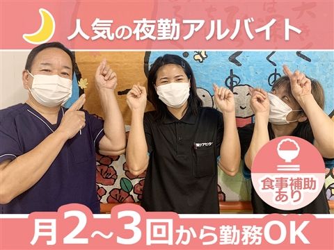 勤務時間 16:30~翌9:00 ※休憩120分 ※月2~3回から勤務OK ※WワークOK ※22時以降は18歳以上(例外事由2号、法令による)
