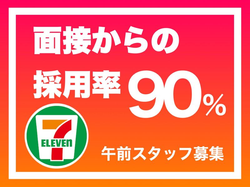 求めている人材 セブンイレブンの午前スタッフ募集♪ 明るくご挨拶できればOK! コンビニバイトが未経験でも大丈夫! 大学生歓迎、主婦(主夫)歓迎、 フリーター、シニアの方まで幅広く歓迎しています! <こんな人歓迎> ・接客/販売業務をお探しの方 ・扶養内でパート勤務したい方 ・短時間バイトをお探しの方 ・Wワークのしやすいバイトをお探しの方