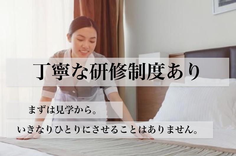 仕事内容 恩納村に浮かぶ唯一無二の島で、 ワンランク上のホテルでの 客室清掃のお仕事です♪ *:..。o○☆ *:..。o○☆ *:..。o○☆* 接客ナシ&ブランク年数不問✨ ホテルの客室清掃スタッフ大募集!! 未経験の方も大歓迎です♪ *:..。o○☆ *:..。o○☆ *:..。o○☆* お客様と直接お話しすることはありません。 「人と話すより、作業に集中したい」 「キレイにすることが好き」 そんな方にピッタリのお仕事です☆ ✅具体的な仕事内容 お客様が快適に過ごせるよう、 ホテルの客室清掃をお願いします。 慣れれば自分のペースでモクモクと進められます。 目に見えて部屋が綺麗になるので達成感抜群! ▶ベットメイク ▶バス、洗面所等の水回り清掃 ▶アメニティのセッティング ▶客室全体の清掃 など ✅ここがポイント! ▶接客なし!業務だけに集中できます! ▶家庭の掃除スキルをそのまま活かせる ▶週2日~OK! 「平日だけ」「土日祝メインで」など、希望を考慮します。 扶養内勤務も、週4日以上しっかり働きたい方も歓迎です! ▶未経験からでも安心! 普段のお掃除スキルがそのまま活かせます! 難しい作業はなく、先輩が丁寧にサポートします。 ▶有名ホテルで安心して働ける! ✅こんなあなたにオススメ◎ ▶コツコツと作業するのが好き ▶人と話すより作業に集中したい方 ▶きれい好き♪ ▶体を程よく動かしたい ▶扶養内で働きたい主婦(夫)さん ▶Wワークで空き時間を活かしたい方 ご興味を持たれた方はお気軽にご応募くださいね! *…*…*…*…*…*…*…*…*…*…* 採用後の流れをご紹介 *…*…*…*…*…*…*…*…*…*…* 【初出勤前】 入社書類手続き・シフト決定・制服のお渡し。 【出勤初日】 オリエンテーション (館内見学・研修動画視聴・作業現場見学) 【2日目以降】 社員や先輩スタッフと一緒に 清掃業務にチャレンジ! (入社から最長1ヵ月が研修期間となります)
