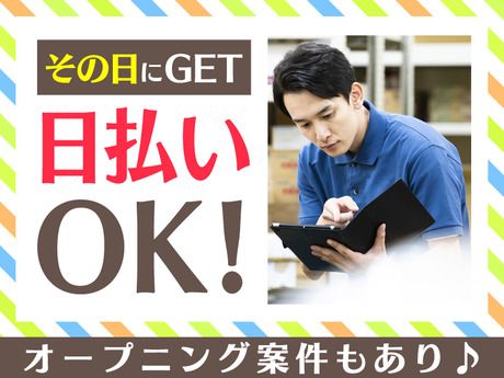 仕事内容 レンタル事務用品の整理整頓 ■事務用品の整理整頓  ̄ ̄ ̄ ̄ ̄ ̄ ̄ ̄ ̄ ̄ ̄ レンタルの事務用デスクや備品の整理整頓 をお任せします♪ 会話少なめ!! モクモクと作業をしたい方に オススメです☆ 【具体的には…】 レンタルからかえってきた 事務用品を仕分けたり 次のレンタルのための整理など♪ 初めての方でも半日あれば覚えられます! それでもわからないことは先輩staffが 丁寧にサポートするので安心して下さいね♪ *━━━━━━━━* とある1日の流れ *━v━━━━━━* 【8:40~8:50★点呼開始!】 ・9:00~9:30 →お仕事先でお仕事の説明 ・9:30~12:00 →教わったお仕事をひたすら繰り返し ・12:00~13:00 →お昼休憩!(1時間) ・13:00~18:00 →午前中と同じ作業の繰り返し >>>18時には完全終了!! ★☆ 短期&長期で稼げる ☆★ ●働き方は自由自在! ●スキマ時間や空いている日を有効活用できる! ━━━━━━━ ★こんな方に★ ━━━━━━━ ■長期休暇に自由にお金を使いたい! ■週末の飲み会に向けてお金が欲しい ■会話少なめで簡単な仕事が欲しい など ★☆嬉しいメリットを教えてください!☆★ 【1】日払いOK 「急な出費のときに本当に助かる…」 「欲しいものがすぐに買えます♪」 「遊ぶ予定の前にサクッと稼いでます!」 【2】短期OK 「長期休みのときだけ働いてます!」 「次の仕事が決まるまでの"繋ぎ"で」 「季節限定のオシゴトだけ♪」 ★☆ スタッフの声 ☆★ 「家庭と両立して働けています。 子育てが落ち着いたらもう少し シフトを増やしてみようかな!」 「アルバイトをしていたけど 急にシフトに入れなくなって 困っていたときに応募しました!」 みなさん、学校・家庭・他のお仕事など と上手に両立しながら働いていますよ♪