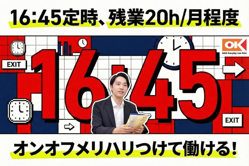 仕事内容 ━━━━━━━━━━━━━━━━━ 定時16:45 × 本社みなとみらい勤務 ━━━━━━━━━━━━━━━━━ ✅月給29万円スタート+賞与年4回 (社内規定あり) ✅残業は月20時間ほど ✅原則土日休み・連休取得もOK ✅本社勤務&転勤なし ✅2~3名のチーム制で相談しやすい 首都圏を中心に170店舗以上を展開し、 38期連続で増収を続ける ディスカウントスーパー「オーケー」 オーケーの仕入れ担当(バイヤー)は、 店舗勤務ではなく、 本社で腰を据えて働けるポジションです。 \20代・30代の若手活躍中!/ 未経験スタートの中途入社メンバーも多く、 日々の生活と仕事を無理なく両立しながら 続けられる環境が整っています。 ━━━━━━【 仕事内容 】━━━━━━ 「仕入れ」「バイヤー」というと 難しそうに聞こえるかもしれませんが、 実は特別なスキルや経験は必要なし! あなたの持つ“生活者としての目線”が 大きな武器になる仕事です。 ◆たとえば… ◎店頭に並べる商品の選定 ◎メーカーとの価格交渉・商品企画 ◎競合商品のリサーチ・市場分析 ◎売上データの集計・改善提案 「オーケーでしか出会えない一品」を届けるために、 メーカーと一緒に商品を作る機会もあります。 自分の選んだ商品が売場に並び、 誰かの日常の一部になる。 そんなやりがいも、この仕事ならではです。 ~ ある1日の流れ ~ 07:45 出社、メール確認 09:00 取引先との商談 12:00 休憩 13:00 商品会議 15:00 商品情報の整理・データ登録 16:00 商談資料作成 16:45 退勤 ✅業務はチームで進めるスタイル 業務が特定の人に偏らないよう、 チーム内で役割を分担しています。 そんな体制を整えていることもあり、 ・残業は月20時間程度 ・原則土日休み ・年始三が日(1/1~1/3)は全店お休み など、働きやすさも実現できています。 ┏━━━━━━━━━━━┓ ◆こんな方にピッタリです◆ ┗━━━━━━━━━━━┛ ✨チームで支え合う仕事がしたい ✨「商品を選ぶ」仕事に挑戦してみたい ✨ルーティンだけでなく、 考えながら進める仕事に興味がある キャリアも、収入も、働き方も。 バランスを大切にしたい方に 選ばれている職場です◎