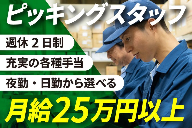 【アピールポイント】 ■夜勤・日勤から選べるピッキングスタッフ募集■ ✅リフト免許は入社後に取得OK ✅充実の各種手当 (皆勤・通勤・品質・無事故・能力手当)