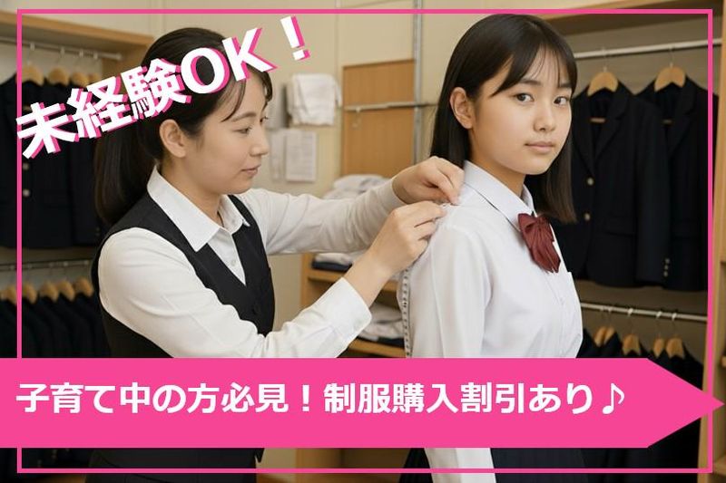 仕事内容 \\アピールポイント// ✅腰を据えて長~く働ける環境♪ ✅未経験でも時給1100円~ ✅車通勤OK(無料駐車場あり) ✅子育て中の方必見!嬉しい従業員割引あり♪ ✅20〜50代のママさんが活躍中! ━━━━━━━━━━━━━━━━━━━ ⭐仕事について ━━━V━━━━━━━━━━━━━━━ 中学校や高校への進学に向けて制服を購入する方への接客対応をお願いします! <具体的なお仕事> ✅学生服や体操服の採寸 ✅レジ業務 ✅商品の受け渡し ✅パソコンへの簡単な入力作業 入社後はいきなり「ではお願いします!」という感じではなく 先輩スタッフが一から丁寧にお教えいたします。 まずは商品の準備や受け渡しなどの簡単な業務からお仕事に慣れていきましょう! ━━━━━━━━━━━━━━━━━━━ ⭐先輩スタッフの声 ━━━V━━━━━━━━━━━━━━━ 地域のお子さん達の進学への期待でキラキラした姿を見守れるステキな職場です! 一緒に働いている方は自分と同じ主婦の方も多く「うちの子が中学に上がる時はね~」 なんて会話も交えながら働いています!