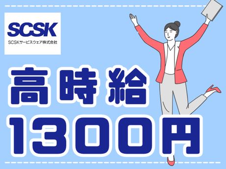 時給1,300円 給与 時給 1300円 時給1,300円 ※研修期間中も同時給 ■交通費支給(月1万5000円まで) ■時間外勤務手当(1分単位で支給) ■友人紹介手当 交通費:交通費支給 【給与例】 給与例 <月収例> 20万8000円(時給1300円×8h×20日) 【 当社について 】 SCSKサービスウェアは、 働き方改革をいち早く進めている SCSK株式会社のグループ企業です。 ◎従業員4000名以上 ◎女性管理職、20代の管理職登用実績あり ◎「健康経営優良法人2025」 2023年度から3年連続認定 「ずっと働きたい」が叶う、定着率の高さには理由があります。 ■ワーク・ライフ・バランス 「働きやすい職場作り」をキーワードに ・有給休暇の取得促進(有給取得率85.7%※2024年度実績) ・くるみんマーク認定(産休・育休の取得実績多数) ・定期健康診断の100%受診(35歳以上は人間ドック無料) など、会社を挙げて取り組んでいます。 \是非こちらもご覧ください!/ 〇当社オウンドメディア〇 https://plus.scskserviceware.co.jp/ 〇当社の会社紹介動画〇 https://www.youtube.com/watch?v=0XPkQpKgzTc 〇採用公式Instagram〇 https://www.instagram.com/scskserviceware_recruit/ ―――――――――――― ■ 正社員任用制度あり ■ ―――――――――――― 契約社員から正社員へのステップアップ制度を設けています。 2024年度は、37名の実績あり! 中長期的にキャリアを描けます。 ――――――――――――― ■ 資格取得支援制度あり ■ ――――――――――――― IT系資格やTOEIC、簿記、MOSなど、対象資格は140種類以上! 試験に合格・更新すれば、会社が受験費用を負担します。 個人のレベルに合わせた研修や、eラーニングで受講できる講座などもあるので、ぜひ活用してくださいね。