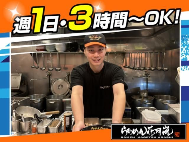 仕事情報 ● 仕事内容 ラーメン店にて、調理補助や簡単な盛り付け、片付け、 洗い物などキッチン業務をお任せします! まずは言われたことを丁寧に取り組んでいただければOK! ラーメンの調理ができるようしっかりお教えするので ご安心くださいね! 未経験でも安心! バイト自体初めての方でも、 全国に300店舗近くの店舗を展開してきた当社ならではの 手厚い教育プランでしっかりバックアップします! まずはあなたのできること・簡単なことから お任せしていきますので安心してくださいね。 らあめん花月嵐のこだわり 看板商品「嵐げんこつらあめん」を筆頭に、 有名シェフ・ラーメン店主やタレントとコラボした 期間限定メニュー等を提供する次世代型ラーメン店! 店内はどこか懐かしく、でも他とちょっと違う雰囲気。 ラーメンを更ににおいしく食べられる工夫を散りばめています。 シフトは自己申告制! 自分の予定優先でOK!短時間勤務も相談に応じます♪ 平日のランチのみのパートさんや夜だけ働く学生バイトさん 独立を目指すフリーターさんなど、 たくさんのスタッフが自分の都合に合わせて イキイキとバイトしています! メリット盛りだくさん! 幅広い世代のスタッフが活躍している当店。 月1回登場する新メニューもいち早く試食できます◎ ラーメン好きにはたまりません♪ 求人への応募が初めての方も大歓迎! 居心地の良さ抜群のお店で私たちと一緒にバイトしましょう!