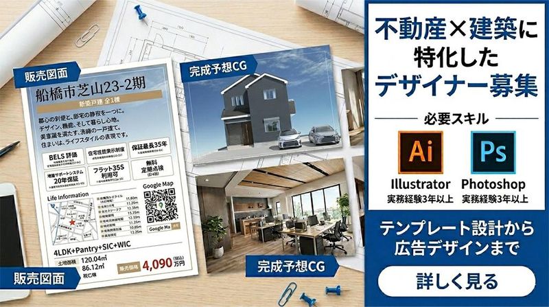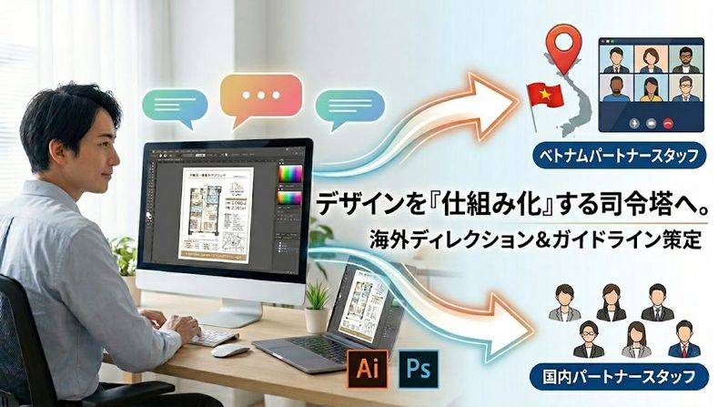 仕事内容 不動産・建築業界に特化したビジュアル制作を行う当社にて、デザインの「仕組み化」と「チーム運営」をお任せします。 ⭐具体的な業務内容 デザイン・制作: 販売図面のテンプレート作成、カタログ、チラシ、Web広告のデザイン。 クライアント折衝: 顧客の要望をヒアリングし、デザイン案へ落とし込む工程のリード。 海外ディレクション: ベトナムの外注先への指示出し、クオリティチェック。 国内管理: 日本人業務委託スタッフへの業務割り振り、進捗管理。 仕組み化: 制作ガイドラインやマニュアルの整備。 ⭐この仕事のポイント 単にデザインを作るだけでなく、「どうすれば効率よく高品質なものを量産できるか」という仕組み作りに携われます。 あなたの作ったテンプレートが、会社や業界全体のスタンダードになります。 ⭐アピールポイント 急成長中のニッチトップ: 不動産×CG・撮影という需要の高い分野で安定した案件数があります。 グローバルな環境: ベトナム拠点との連携など、ディレクターとしてのキャリアの幅が広がります。 裁量権: デザイナーチームの3人目として、ワークフローの改善などにも積極的に意見を出せる環境です。