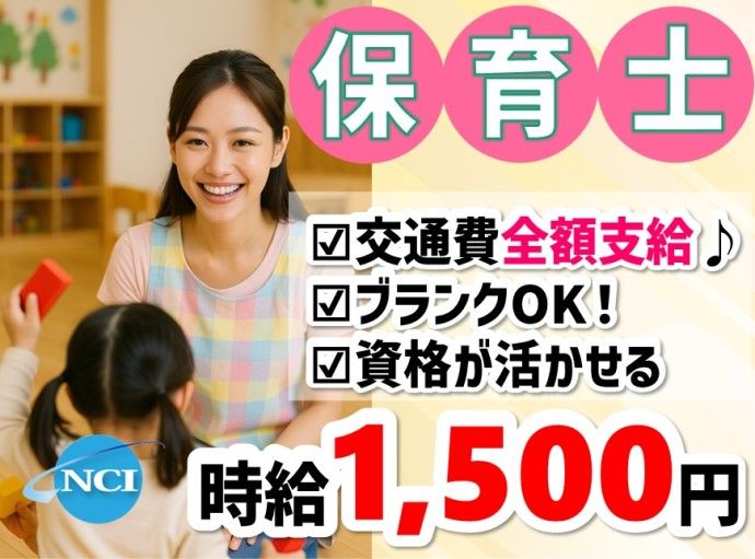 PR・職場情報 【保育士さん大募集】 0歳~就学前までの子どもたちと関わりながら、資格を活かして楽しくお仕事しませんか?✨ 交通費はうれしい全額支給!新幹線通勤もOKだから遠方からでも安心 未経験スタートやブランク復帰も大歓迎 シニア世代も活躍中で、65歳以上の方も応募OK!幅広い年代が元気に働いています 求人の特徴 交通費はうれしい全額支給♪ 遠方からでも通勤できます✨ 求人ポイント 高収入・高月給,交通費支給,即日勤務OK,急募,駅から5分以内,長期,バイク通勤OK,大量募集,車通勤OK,経験者歓迎,リモート面接OK,有資格者歓迎,社会保険完備,50代以上応募可,ブランクOK,U・Iターン歓迎,禁煙・分煙,シフト制,40代以上応募可,産休制度あり,週3からOK,産休・育休取得実績あり,固定時間制