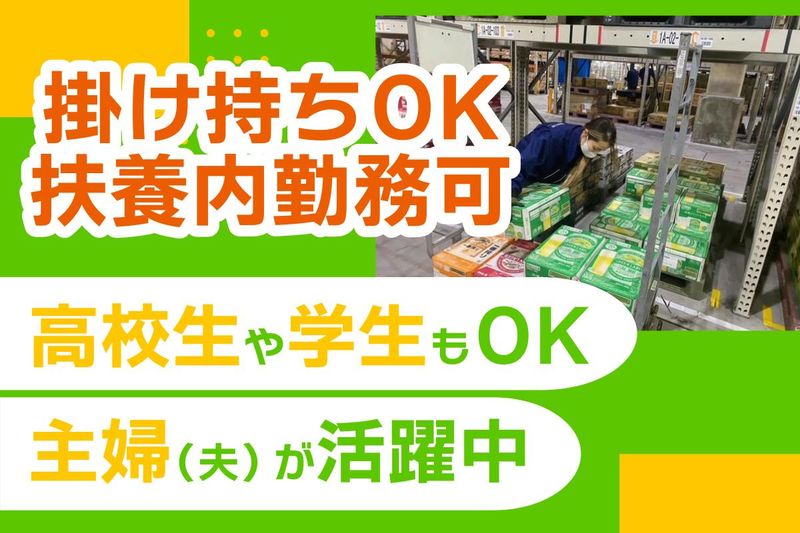 仕事内容 ✨ 20代〜40代の女性スタッフがメインに活躍中! ✨ 「家事の合間に」「子育てと両立して」無理なく働ける職場! 大手食品物流倉庫内での、出荷・入荷に伴うカンタンな作業をお任せします。 重い荷物をずっと運び続けるような重労働はないので、未経験の方もご安心ください! ▼具体的にお任せするのは… 【1】出荷作業 リストを見ながら、注文された食品を棚から集める「ピッキング」がメイン。 ゲーム感覚でテキパキ進めるのが好きな方にピッタリ! 最後にカートへ積み込めば完了です♪ 【2】入荷作業 届いた商品の数に間違いがないかチェックし、ラベルをペタッと貼る作業です。 コツコツ丁寧に進めたい方にオススメ! <<ここがポイント!>> 「動くから、あっという間!」 じっとしている仕事より、適度に体を動かして健康的に働きたい方に人気です! 短時間・扶養内OK! 「9:00〜14:00」「10:00〜15:00」など、お子さんの送迎や夕飯の支度に間に合うシフトが多数あり、 在籍中のパートさんにも人気! 急な予定にも柔軟に対応!チームでカバーし合う文化が根付いています。 20代〜40代が中心の活気ある職場 同年代が多いから、休憩時間はちょっとした子育て相談や世間話で盛り上がることも♪