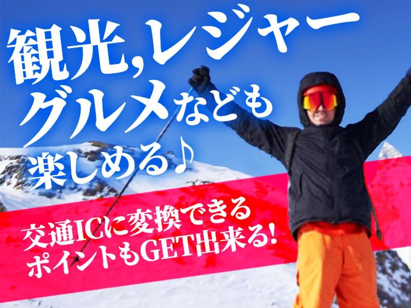時給1,350円以上 給与詳細 基本給:時給 1350円 〜 【給与】 時給1,350円+交通チケット+WESTERポイント支給あり☆ ◆給与例 時給1,350円×1日8h×週5日=月収22万6,800円+6,300WESTERポイント 寮費・光熱費はすべて費用負担なし☆ 【1P=1円に変換できるポイントをお給料とプラス支給◎】 就業後アンケート回答&4時間以上の就業で 1日300円分のWESTERポイント付与! 例えば、 20日稼働で6,000円分付与が実現! 貯まったポイントは交通系ICカードへ変換◎ 1P=1円の使用可能なので、 コンビニや、カフェ・飲食店などで利用OK◎ \18,300円分のポイント付与実績あり/ さらに!今ならリゾートバイト経験者採用制度で1日500円分のWESTERポイントを付与◎ ※もちろん未経験の方の応募も引き続き大歓迎です! ※以下の条件(1)、(2)をともに満たす方が対象となります。 (1)観光地やリゾート地の施設(ホテル、旅館、レジャー施設等)での就業経験がある方 (2)60日以上の住み込みでの就業経験がある方