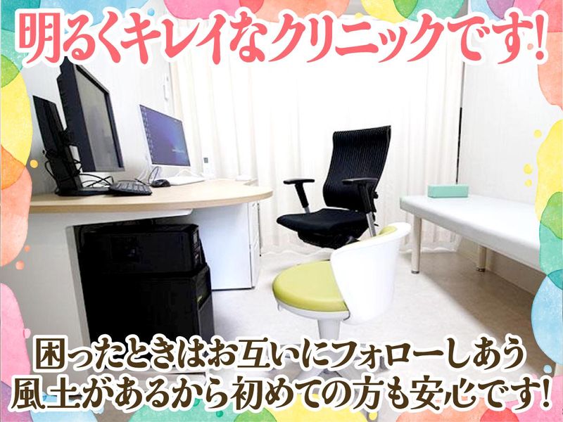 職場環境 明るくきれいな雰囲気のクリニックです!困ったときはお互いにフォローしあう風土があるから初めての方も安心です! また優しく仲間思いのスタッフばかりなので、人間関係で悩む必要はありませんよ!時間を上手に使いながら仕事と家庭・プライベートを両立しています。 喫煙所:なし(敷地内全て禁煙)