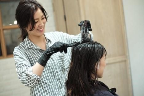 白髪染め専門セルフサロンでのヘアカラースタッフ