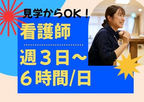 仕事内容 仕事内容 入居者様の体調管理、服薬管理、施設内の簡単な処置を行っていただきます。 〇ユニット型特養29室 〇ショートステイ10室 〇グループホーム18室 増員募集です! 専門職・介護職員と連携しているから働きやすい環境を実現できています。 〇1日6時間~OK&週3日~OK 〇医療対応は簡単な処置がありますがその他、医療行為はほとんどありません。 〇賞与あり&年末年始手当あり&永年勤続表彰制度あり◎福利厚生充実 〇お米購入支援スタート!大好評! 〇車通勤OK!無料駐車場完備