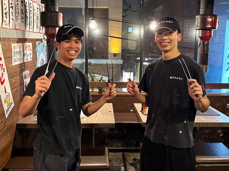 仕事内容 亀戸ホルモン神楽坂店 アルバイト・パート募集! 「ホルモンはブルースだ!」 ──そんな熱いコンセプトのもと、 日々の喧騒を忘れてホルモンを 楽しめる空間を提供しています。 当店では、一般的な焼肉店の 2〜3倍もの時間をかけて、 独自の仕込みを徹底。 臭みを極限まで抑えた、 鮮度抜群のホルモンをお客様にお届けしています。 そのこだわりが、 リピーター続出の理由。 味に妥協せず、手間を惜しまない姿勢が、 私たちの誇りです。 【仕事内容】 ■お客様のご案内 ■オーダー ■ドリンクづくり ■配膳・下膳 ■ホルモン作り ■テーブルセッティング ■レジ対応 ■店内清掃 明るく活気ある雰囲気の中で、 お客様との会話を楽しみながら働けます。 未経験の方でも、先輩スタッフが しっかりサポートするので安心してください。 ■接客スキルとチーム力が身につく環境 お客様との距離が近く、 「おすすめのお肉は?」 「焼き方のコツは?」など、 会話を通じて信頼関係を築けます。 忙しい時間帯もスタッフ同士が 声を掛け合って連携し、 チームで乗り越える達成感があります。 10代・20代が活躍中の職場です! ■店舗運営のノウハウを学べる ホール業務に慣れてきたら、 ドリンクづくりや簡単な仕込み、 ホルモンの下処理などにもチャレンジ可能。 3か月ほどで店舗全体の流れを理解でき、 希望があれば店長代理や 正社員へのステップアップも目指せます。 ■未経験でも安心のサポート体制 ほとんどのスタッフが未経験スタート。 最初は笑顔で挨拶ができればOK! 先輩がマンツーマンで教えるので、 安心して一歩ずつ成長できます。 外国人スタッフも在籍しており、 日本語でのコミュニケーション (N4程度)をサポートします。 ー <こんなにすごいぞ亀戸ホルモン!> SNSにて「焼肉百名店」三年 連続選出 おかげさまで亀戸ホルモン恵比寿店は 2021年に続き2022年も百名店に選出されました。