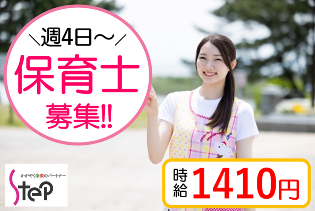 【高時給】 土日祝休み♪ ピアノなし / 週4日~OK / 残業なし! / 時間固定勤務です☆ 株式会社ステップグランドスタッフ 認定こども園の保育士 . ■案件NO,15852B■お電話で案件番号をお伝えください! *:;;;:*:;;;:**:;;;:*:;;;:**:;;;:*:;;;:**:;;;:*:;;;:* 認定こども園の保育士の求人案件です♪ *:;;;:*:;;;:**:;;;:*:;;;:**:;;;:*:;;;:**:;;;:*:;;;:* \ここがポイント!/ ◆土日祝休み ◆残業なし ◆当社スタッフ活躍中 ◆持ち帰り業務なし 朝は9時からスタート! 子育て中の方も働きやすい☆ 17時に定時退社できるので 夕食作りもゆとりを持てます♪ 平日だけの時間固定勤務なので パートのような働き方がしたい方に オススメです! \働きやすさ!/ ピアノや保護者対応業務は ありませんので、 ストレスを抱えることなく のびのびお仕事できますよ♪ ____________ ▼こんな園さんです 平成27年に開設した 定員277名の認定こども園☆ ウッドデッキもあり、光がたくさん 差し込む明るい園舎です(^^) 一年を通してたくさんの行事を 行っています☆ 担任やリーダー業務はないので、 正職員さんの補助として たくさんの行事に関わることができ 保育士としてのスキルアップも 目指すことができますよ! _____________ \ステップのここが嬉しい/ 園への見学時も同行します☆ 働く上で園へ伝えておきたいこと、 時間の相談などなど ご自身では伝えにくいことも コーディネーターが伝えますので 見学時も安心です♪ 事前に園の雰囲気を知ってから 入職に繋げることができるのも 嬉しいポイント! 1人で悩まなくても大丈夫! 保育士としての経験がある コーディネーターが あなたのお仕事開始まで 精一杯サポートします! もちろん、お仕事開始後も 継続的にサポートしますので ご安心ください☆ ・・・・・・・・・・・・・・ \希望登録/も受付中! 希望の条件で働けるチャンス☆ 通勤時間や、勤務時間、勤務曜日など ご希望をお聞かせいただいた上で あなたにぴったりの勤務先を ご提案させていただきます♪ .