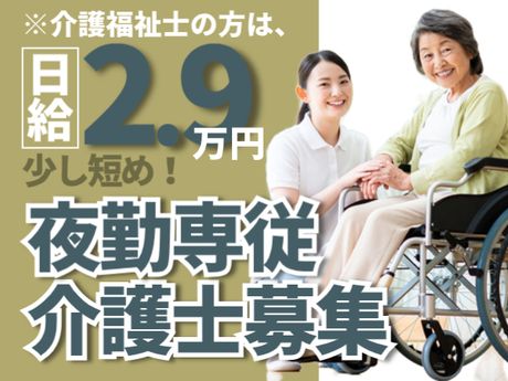 \実働約14hで高収入/介福⇒日給2万9000円♪週2回~|夜勤3名体制!フロア固定|駅~徒歩7分