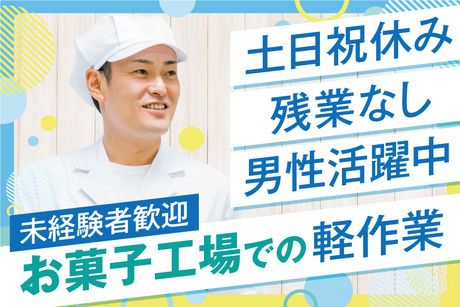 仕事内容 【アピールポイント】 未経験歓迎!すぐに覚えられるシンプル作業☆ 土日祝休み!残業なしで定時でピタッと退社♪ 車&バイク通勤OK!最寄り駅より徒歩圏内◎ 【仕事内容】 みんなが一度は食べたことのある “あのお菓子”を作るお仕事です! ▼お仕事の流れは… ・お菓子の材料を量る! ・量った材料を機械にと入れるだけ! 「じっとしてるより、動いてる方が好き」 「1人でモクモク作業したい」 そんな方にピッタリのお仕事です♪ 作業はとってもカンタン◎ 未経験でもすぐに慣れてサクサク進められる! 最初は先輩がしっかりサポートしてくれるので、 工場で働いたことがなくても安心スタート♪ 【職場について】 勤務先の工場で作っているのは スーパーなどで誰もが見たことのある”有名なお菓子”! 馴染みのある商品を扱うのでやりがいもバツグン! ※20代、30代、40代、50代の男性活躍中! ※お友達同士のご応募も大歓迎♪ ※即日など、勤務開始日は相談OK!