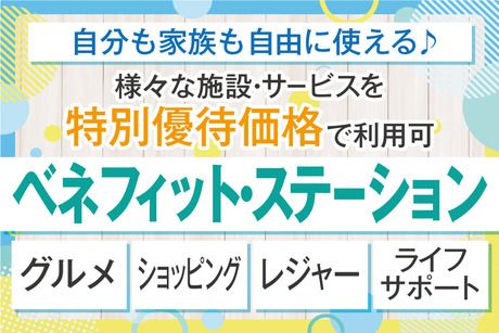 【保険制度】 雇用保険、労災保険、健康保険、厚生年金 待遇・福利厚生 【福利厚生】 ・社会保険完備 ・交通費全額支給 ・バイク、車通勤OK ・作業服貸与 ・空調完備 ・休憩施設使用可能 ・屋内禁煙 ・子ども手当あり ・結婚、出産、入学祝あり ・退職金制度あり ※各々、社内規定に基づく 【ベネフィット・ステーションの利用が可能】 ベネフィット・ステーションとは、 様々なシーンでご利用いただける 総合型福利厚生サービスです。 映画鑑賞やホテルディナー、宿泊施設 などの余暇・レジャー関連をはじめ、 日常で使えるフィットネスや 育児・介護支援、ライフサポートなど 約140万件以上の幅広いメニューを お得な価格で利用できます。 <サービス例> ・全国40,000以上の宿泊施設 ・全国30,000店舗以上の飲食店 ・全国約7,700ヶ所のスポーツクラブ など スタッフさんはもちろん、ご家族の方もお好きなだけ利用できます。