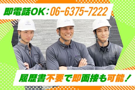 選考プロセス 〈1.応募〉Webまたはお電話 (受付:月~金曜日9時~18時)から応募。 〈2.面接〉履歴書不要!仕事内容や職場について など、気になることやご希望はなんでも お聞かせくださいね。 〈3.採用〉あなたに会えることを楽しみにして います!勤務開始日もお気軽にご相談ください。 ※応募の秘密は厳守します。 【問合せ先について】 問合せ先:06-6375-7222 あなたの「頑張りたい」という気持ちを応援! 充実した教育サポート&福利厚生が揃った 当社でチャレンジしませんか?ご希望を聞かせてください! CP1 応募方法 Webまたはお電話(06-6375-7222)でご応募ください。 Webの場合は応募シートを入力の上送信ください。 面接日など追ってご連絡します。 【履歴書不要】お電話でも、お気軽にご連絡下さい。
