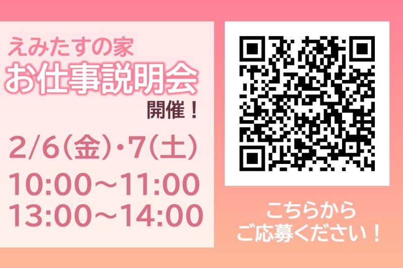 【応募の流れ】 【STEP.1】応募 ▼ 【STEP.2】担当者より、面接日時等のご連絡 ▼ 【STEP.3】面接 ▼ 【STEP.4】内定! ★面接日・入社日は相談に応じます! ★オープン1ヶ月前より入社可能! アクセス(勤務地) 所在地 三重県津市高茶屋小森町1263番地 アクセス 【日中支援型グループホーム えみたすの家高茶屋】 【応募方法】 応募フォーム、又はお電話にてご連絡ください。 ■お電話からのご応募・お問い合わせ エミタス株式会社 電話番号: 059-235-1165 受付時間: 9:00~17:30 ■WEBからのご応募 応募先へ進むを押してご応募ください